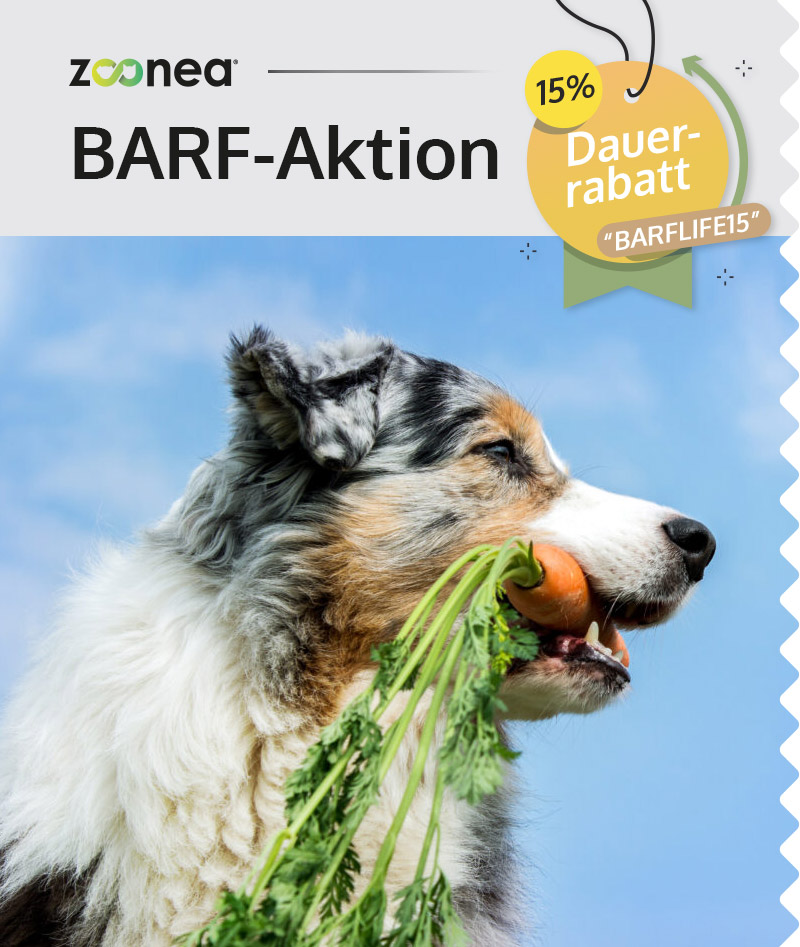 Achten Sie bei Ihrem Einkauf darauf, dass Sie mit Ihrem Kunden-Konto in unserem Online-Shop angemeldet sind. Wenden Sie im Checkout den Aktionscode "BARFLIFE15" an.